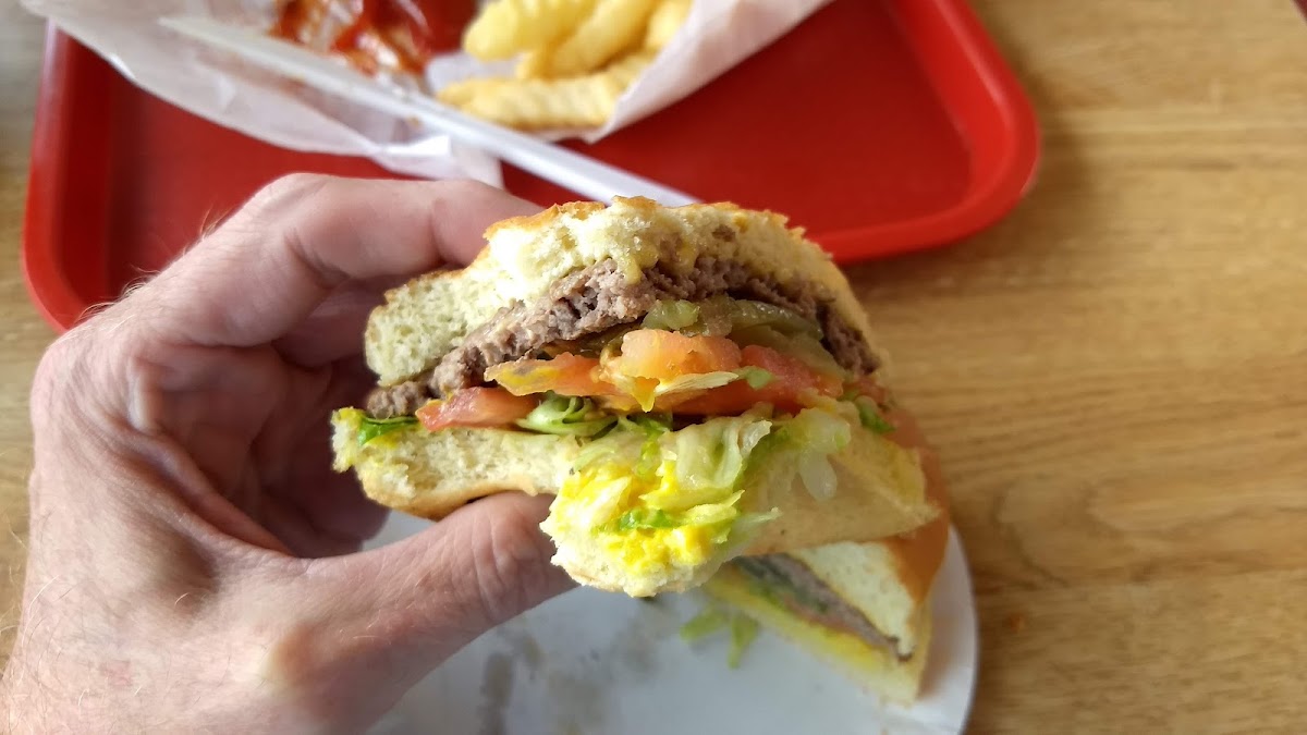 Best burger in the area. Just an old fashioned burger joint with good food, nice people, and low prices. Cost me $7.00 for the Jumbo (1/4 lb) cheeseburger, 9 corn nuggets, and a drink. The burger was phenomenal, grilled the good ole way with a fresh bun and fresh toppings. The corn nuggets were the best I’ve ever had, and I get them anywhere that’s offered. I also has some fries courtesy of my friend, pretty good too.